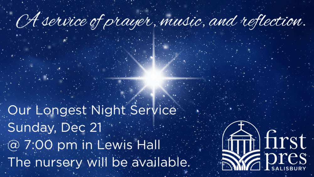 Lewis Hall West Innes St, Parking Lot, Salisbury, NC, United StatesDuring the last few years, the Longest Night has become a special part of our Advent Services. It is a service of
